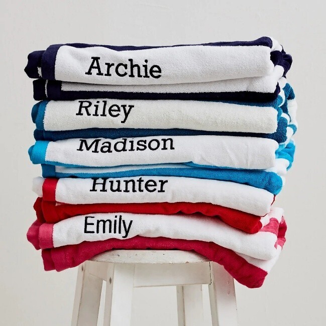 Towels are a standout summer Christmas product. Name embroidery adds a premium feel and makes them perfect for families, holidays and beach trips.