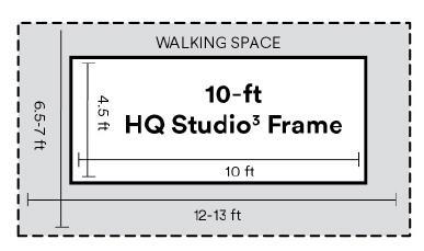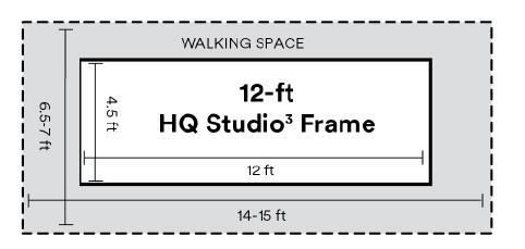 Note: You can place one short end of the frame against a wall to save space. This can reduce the overall width needed by about 1.5 feet.