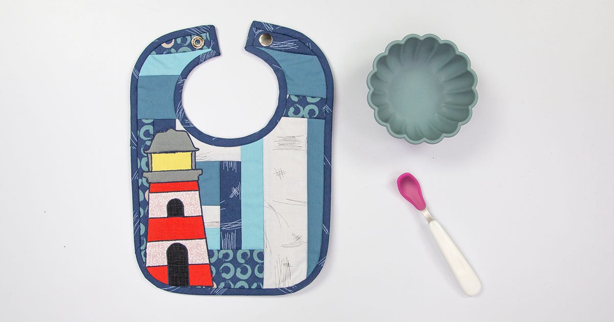 Quick and adorable baby gifts are simple to make when you start with a June Tailor Quilt-As-You-Go kit. To make it even easier to create these useful items, be sure to check out the GO! Sail Away Baby Bibs Project Bundle with everything you need, just add fabric. These bibs were designed for AccuQuilt by Amada Harward of Larkspur Quilts.