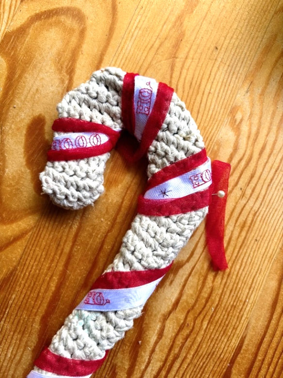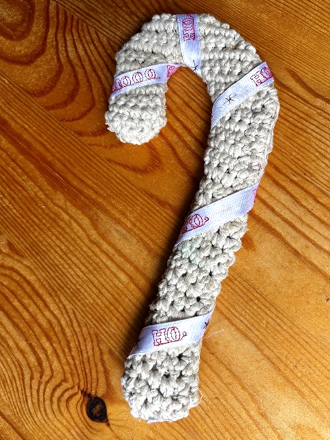 4. Fill the candy cane with polyfill or wool roving then hand-stitch the opening closed.