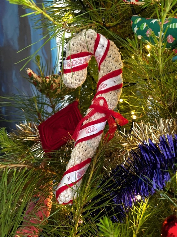 1.Wrap your ribbon around the candy cane. Try different combinations and when you are happy with your design, glue in place.