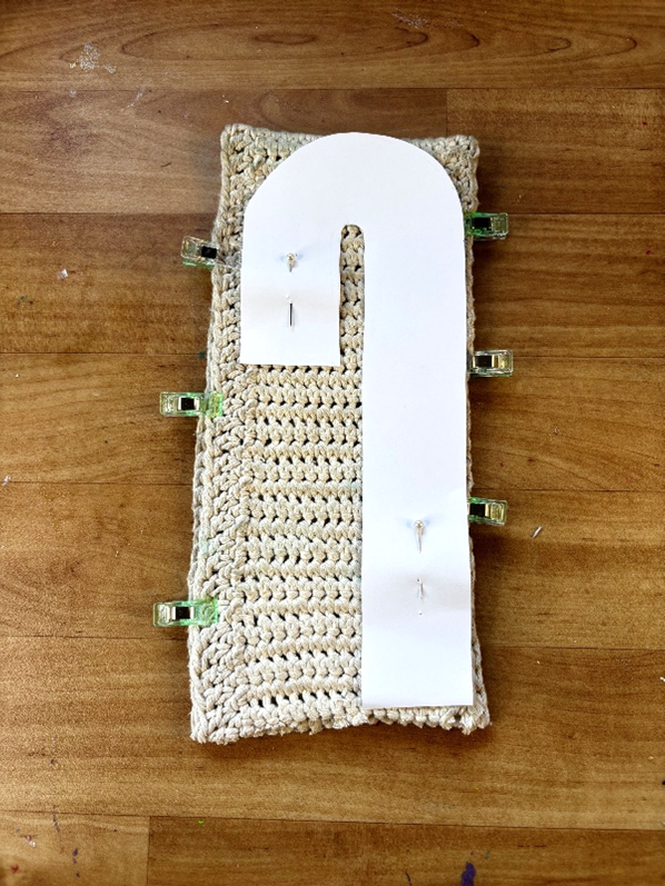 Handy hint- I like to place two pins to act like a starting and stopping point, to remind me to leave that section open.