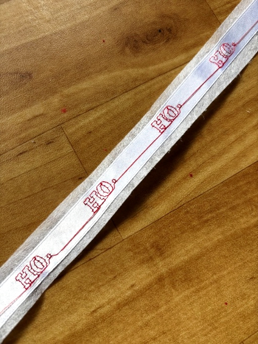- Iron the tearaway stabiliser onto the underside of your ribbon making sure there is a cm extra each side. It is easier to remove the stabiliser after you embroider it.