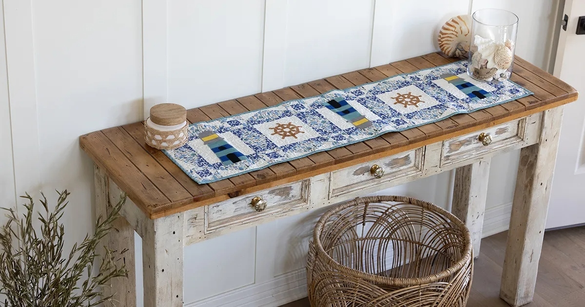 This coastal charmer will make a lovely addition to any table, by land or by the sea! Designed for AccuQuilt by Lissa LaGreca of Lovingly Lissa, this table runner project all starts with the GO! Storm at Sea Block on Board die, for a touch of quilting humor. The GO! Lighthouse and GO! Nautical Medley dies complete the design for you in just a flash.
